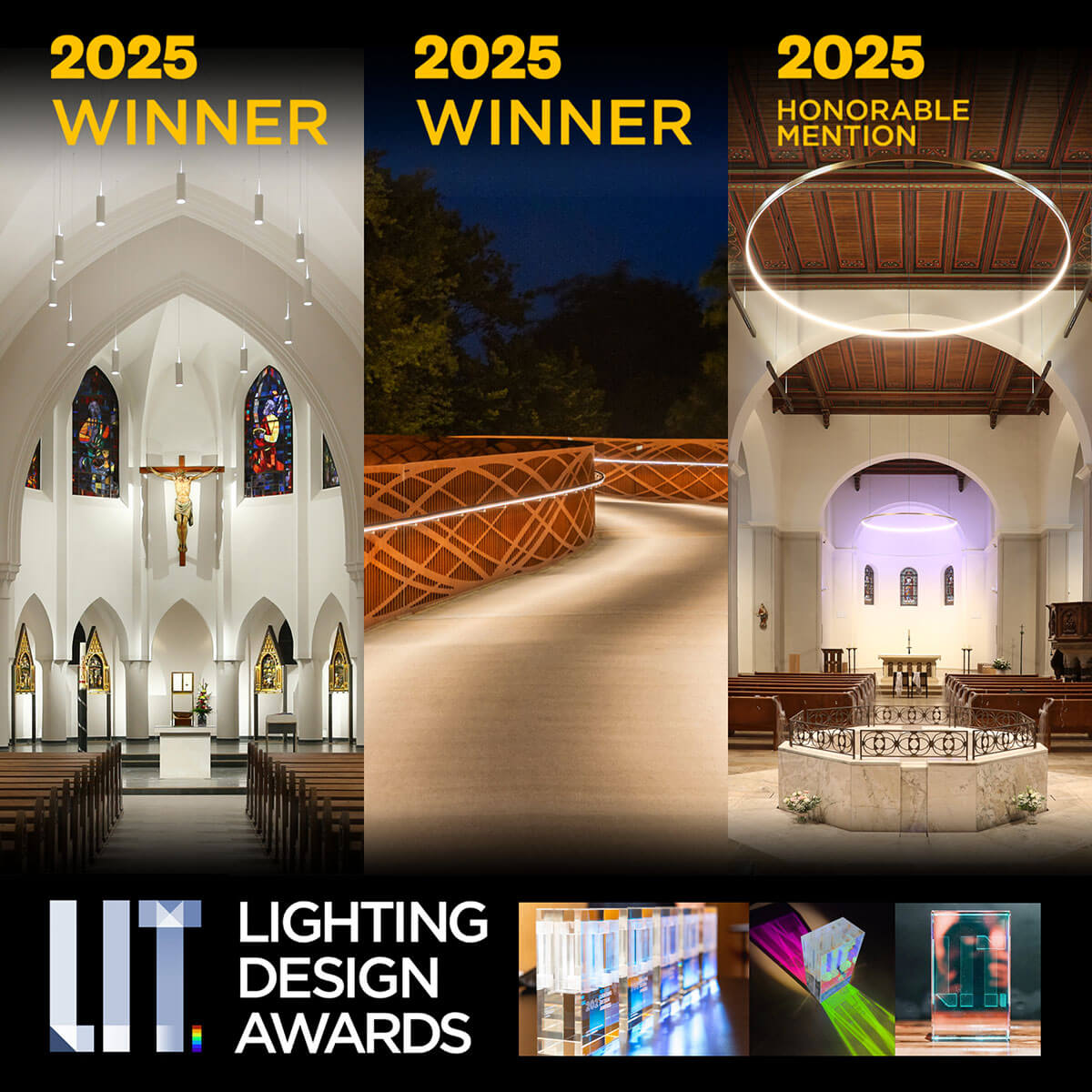 Zweifache Auszeichnung (und eine ‚honorable mention‘) bei den diesjährigen LIT Lighting Design Awards 2025!